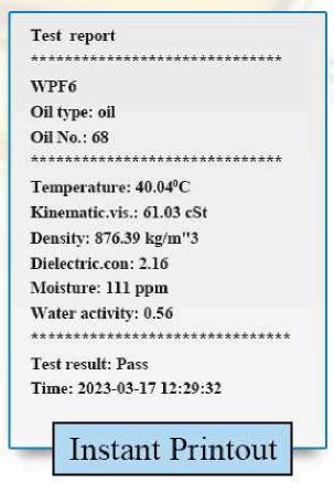 Oil samples can be tested instantly with printed test result. Consumable not required