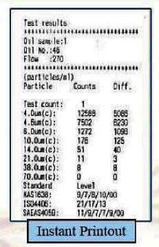 Oil samples can be tested instantly with printed test result. Consumable not required